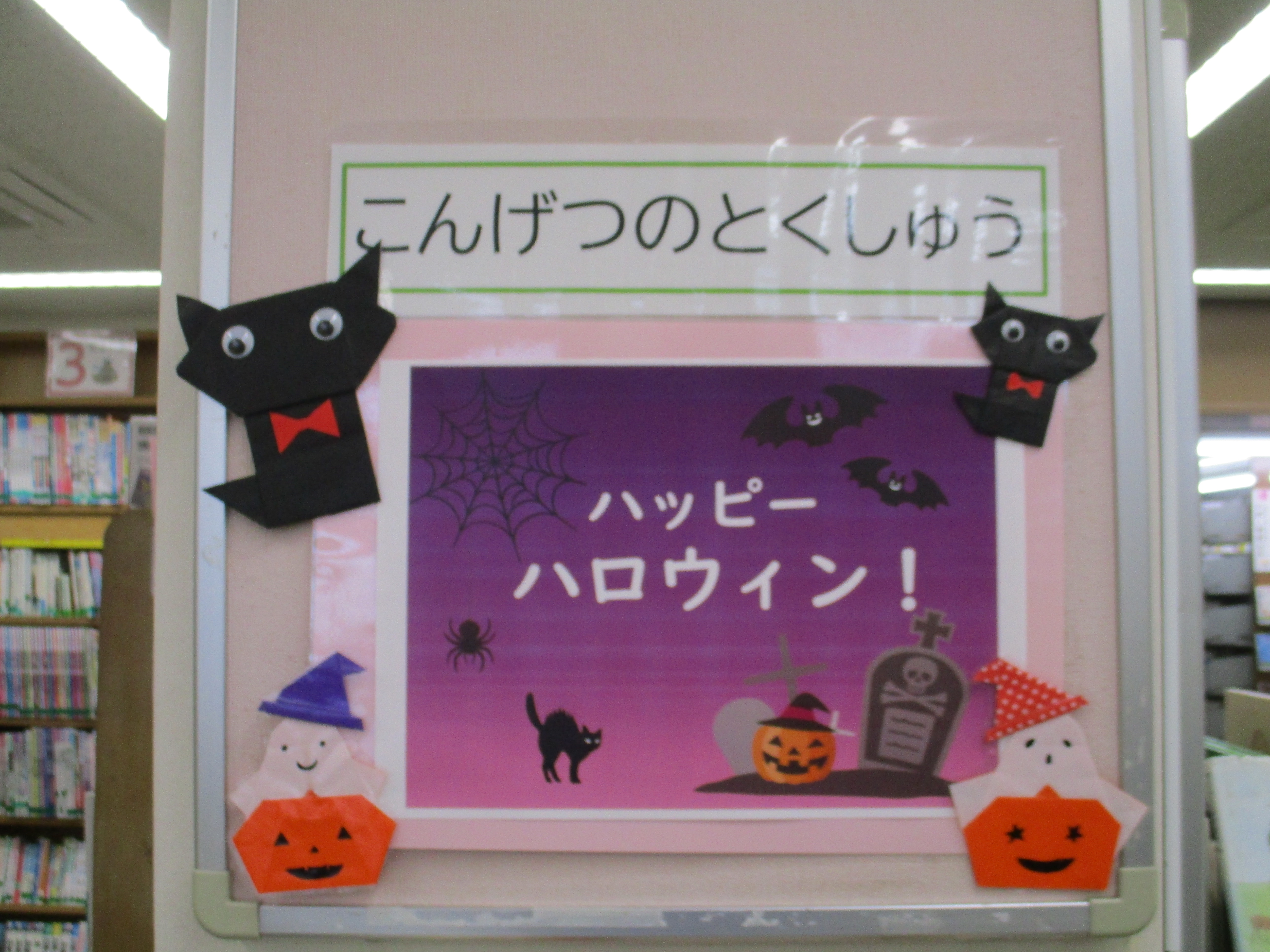 まじょ、かぼちゃ、おばけなどハロウィンにかんするほんをあつめました。