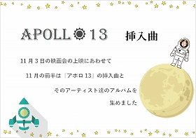 11月前半は映画祭に合わせて、「アポロ13」の挿入曲とそのアーティストたちのアルバムを集めました。