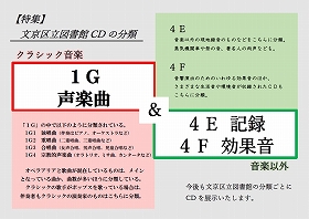 【11月月間】文京区立図書館CDの分類 1G&4E&4F